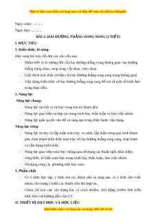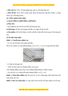 ợ tác trong trình bày, th o ả lu n ậ và làm vi c ệ nhóm - Năng l c ự gi i ả quy t ế v n ấ đ ề và sáng t o ạ trong th c ự hành, v n ậ d n ụ g. Năng l c ự riêng: - Năng l c ự t ư duy và l p ậ lu n ậ toán h c ọ : so sánh, l p ậ lu n ậ trong quá trình khám phá, hình thành ki n ế th c ứ toán h c ọ v ề hai đ n ườ g th n ẳ g song song, th c ự hành và v n ậ d n ụ g ki n ế th c. ứ - Năng l c ự giao ti p ế toán h c ọ : thông qua s ử d n ụ g các thu t ậ ng , ữ khái ni m ệ , công th c, ứ kí hi u ệ toán h c ọ trong trình bày, th o ả lu n ậ , làm vi c ệ nhóm. - S ử d n ụ g công c , ụ ph n ươ g ti n ệ h c ọ toán. 3. Ph m ẩ ch t ấ - Có ý th c ứ h c ọ t p ậ , ý th c