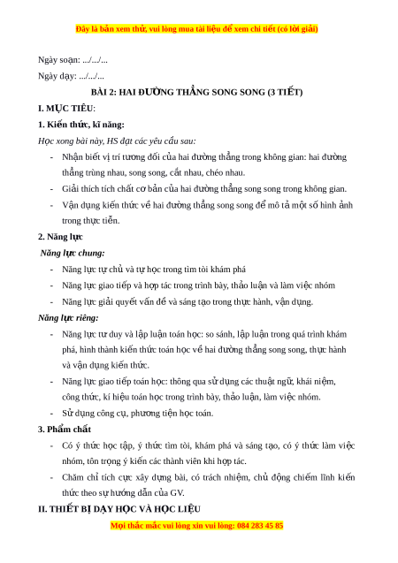 Đây là bản xem th , vu ử i lòng mua tài li u ệ đ xe ể m chi ti t ế (có l i ờ gi i ả ) Ngày so n ạ : .../.../... Ngày d y ạ : .../.../... BÀI 2: HAI ĐƯ N Ờ G TH N