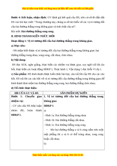 ẳ g trung nhau, song song, c t ắ nhau, chéo nhau. b) N i ộ dung: HS đ c ọ SGK, nghe gi n ả g, th c ự hi n ệ các nhi m ệ vụ đ c ượ giao, suy nghĩ tr ả l i ờ câu h i ỏ , th c ự hi n ệ các ho t ạ đ n ộ g HĐKP 1, Th c ự hành 1, V n ậ d n ụ g 1 đ c ọ hi u ể Ví d ụ 1. c) Sản ph m