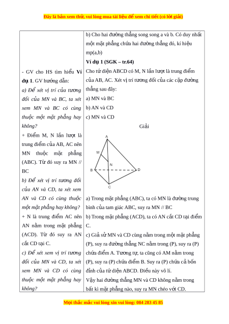 Đây là bản xem th , vu ử i lòng mua tài li u ệ đ xe ể m chi ti t ế (có l i ờ gi i ả ) Bư c ớ 4: K t ế lu n, ậ nh n ậ đ nh: ị GV đánh giá k t ế qu ả c a ủ HS, trên c ơ s ở đó d n ẫ d t ắ HS vào bài h c ọ m i ớ : “Trong ch n ươ g này, chúng ta s ẽ tìm hi u ể v ề các v ịtrí t n ươ g đ i ố c a ủ hai đ n ườ g th n