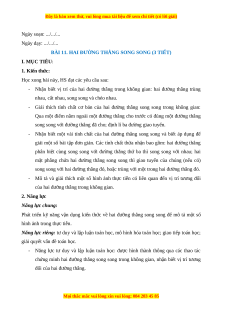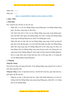 BÀI 11. HAI ĐƯỜNG THẲNG SONG SONG (3 TIẾT) I. MỤC TIÊU: