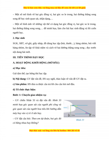 Giáo án Hai đường thẳng song song Toán 7 Cánh diều