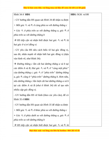 Hoạt động 1: Hai góc đồng vị. Hai góc so le trong a) Mục tiêu: