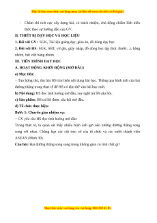 - Vận dụng kiến thức về hai đường thẳng song song để mô tả một số hình ảnh trong thực tiễn. 2. Năng lực