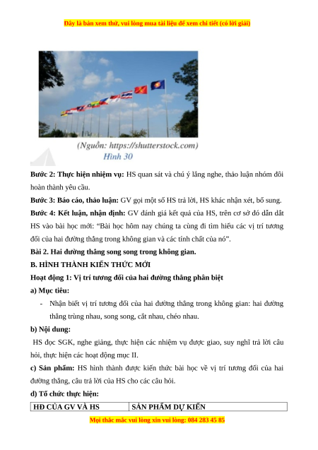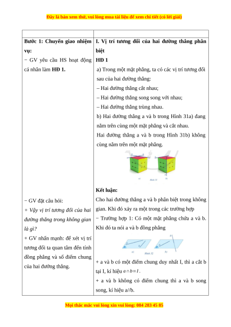 Bước 1: Chuyển giao nhiệm I. Vị trí tương đối của hai đường thẳng phân vụ: biệt