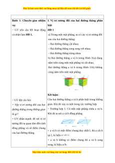 - Nhận biết vị trí tương đối của hai đường thẳng trong không gian: hai đường