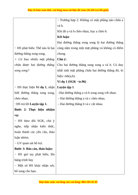 Giáo án Hai đường thẳng song song trong không gian Toán 11 Cánh diều