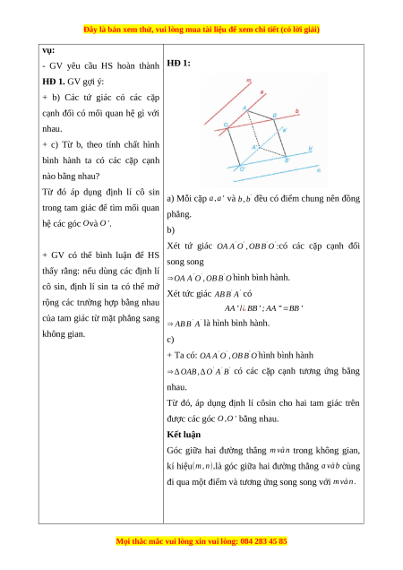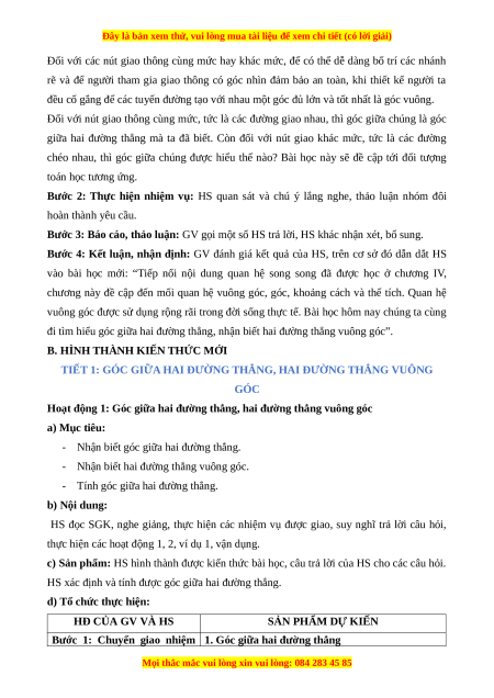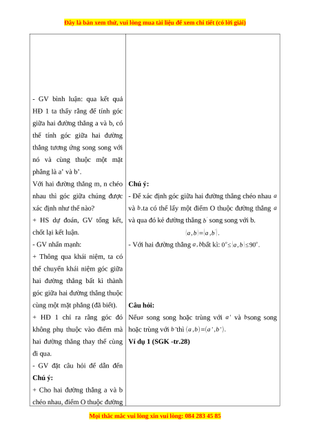- Tính góc giữa hai đường thẳng. b) Nội dung: