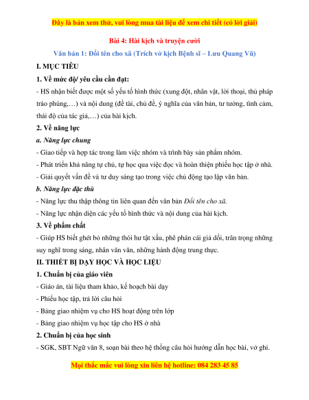 Văn bản 1: Đổi tên cho xã (Trích vở kịch Bệnh sĩ – Lưu Quang Vũ) I. MỤC TIÊU