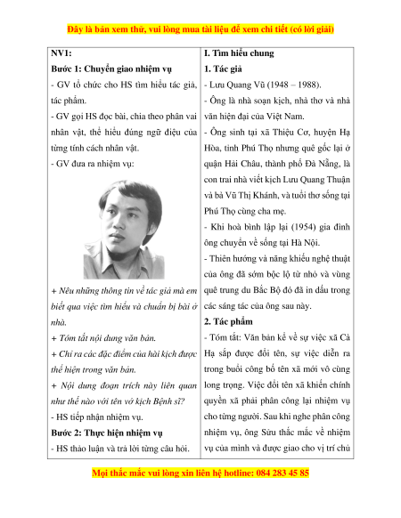 - GV tổ chức cho HS tìm hiểu tác giả, - Lưu Quang Vũ (1948 – 1988). tác phẩm.