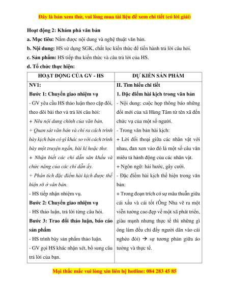 - Năng lực nhận diện các yếu tố hình thức và nội dung của hài kịch. 3. Về phẩm chất
