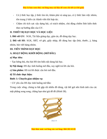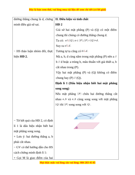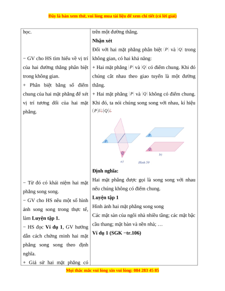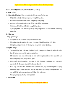 - Giải thích được tính chất cơ bản về hai mặt phẳng song song. b) Nội dung: