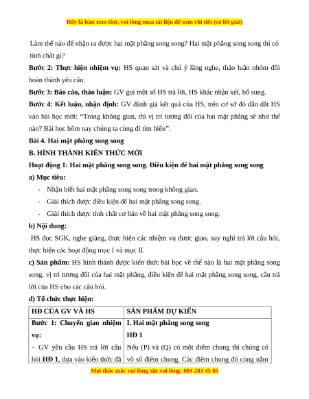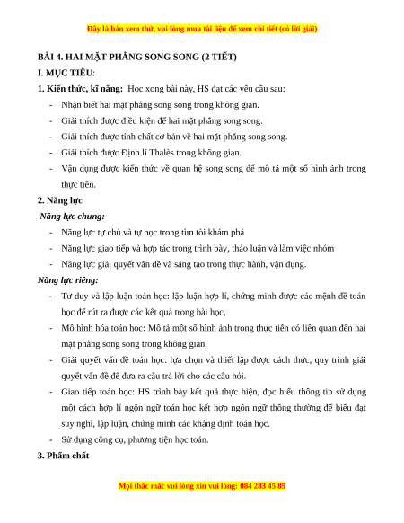 BÀI 4. HAI MẶT PHẲNG SONG SONG (2 TIẾT)