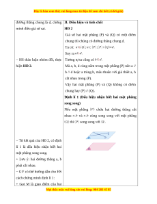 của hai đường thẳng phân biệt + Hai mặt phẳng ( P) và (Q) có điểm chung. Khi đó trong không gian.