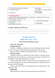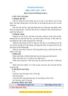 BÀI 4: HAI NGƯỜI BẠN (Tiết 1) I. YÊU CẦU CẦN ĐẠT: 1. Năng lực đặc thù.