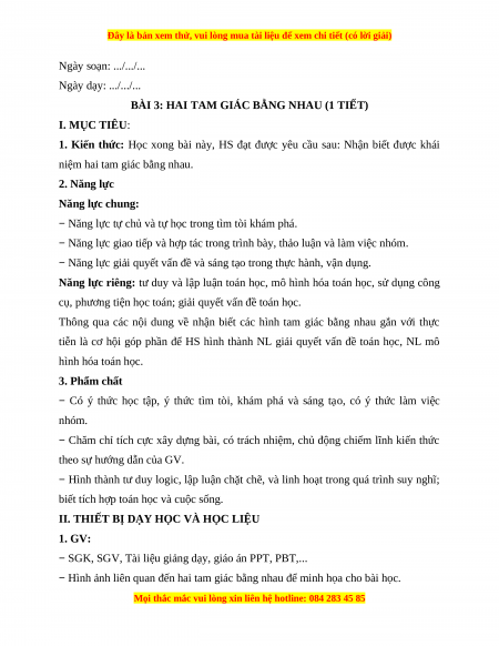 BÀI 3: HAI TAM GIÁC BẰNG NHAU (1 TIẾT) I. MỤC TIÊU: