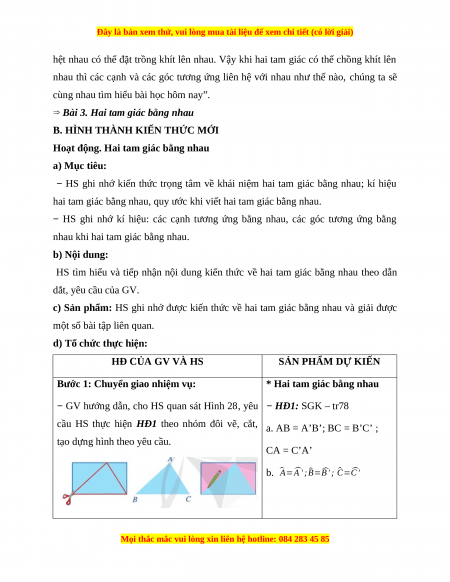 Hoạt động. Hai tam giác bằng nhau a) Mục tiêu: