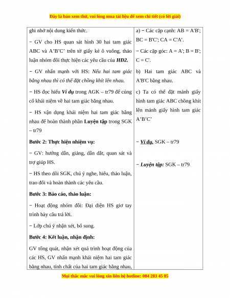 Giáo án Hai tam giác bằng nhau Toán 7 Cánh diều
