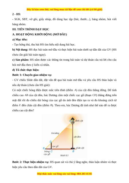 chiều cao AB của cột đèn, bác Dương cắm một chiếc cọc gỗ (đoạn CD) thẳng đứng trên