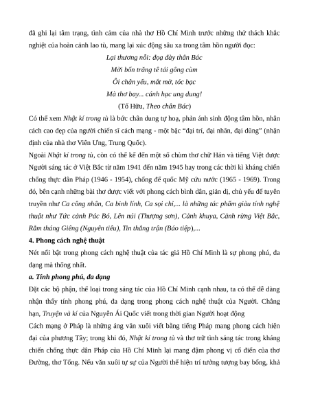 thức nghệ thuật. Sự nghiệp văn học của Người bao gồm nhiều thể loại, trong đó các thể