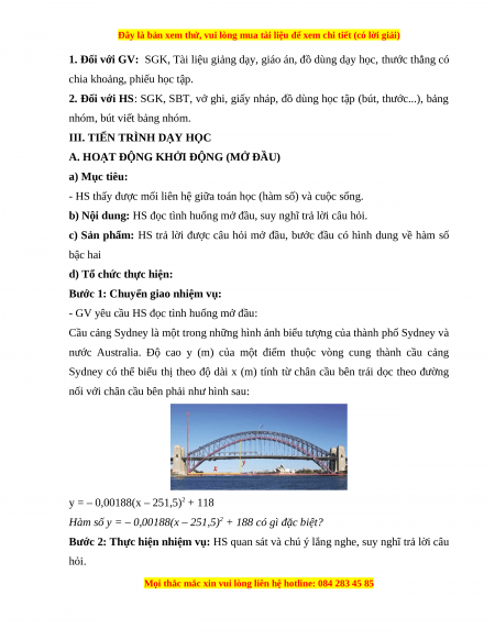 - HS nhận biết và thể hiện được khái niệm hàm số bậc hai. b) Nội dung: