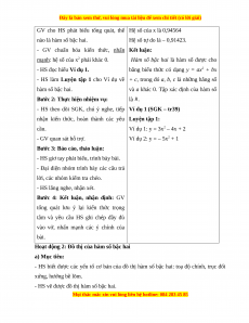 nhận kiến thức, hoàn thành các yêu Luyện tập 1: cầu. Ví dụ 1: y = 3x2 – 4x + 2 - GV quan sát hỗ trợ. Ví dụ 2: y = – 5x2 + 1
