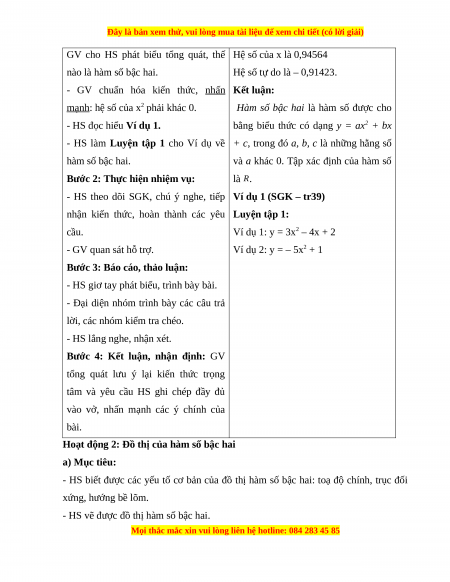 GV cho HS phát biểu tổng quát, thế Hệ số của x là 0,94564 nào là hàm số bậc hai.