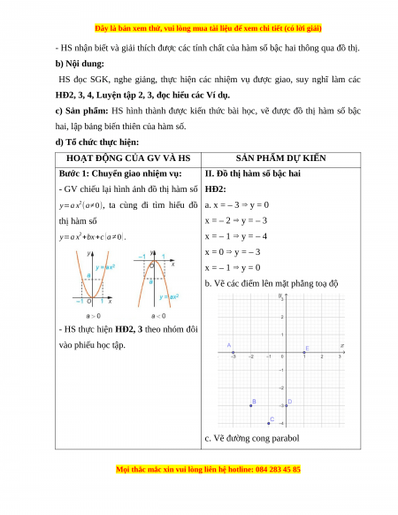Hoạt động 2: Đồ thị của hàm số bậc hai a) Mục tiêu: