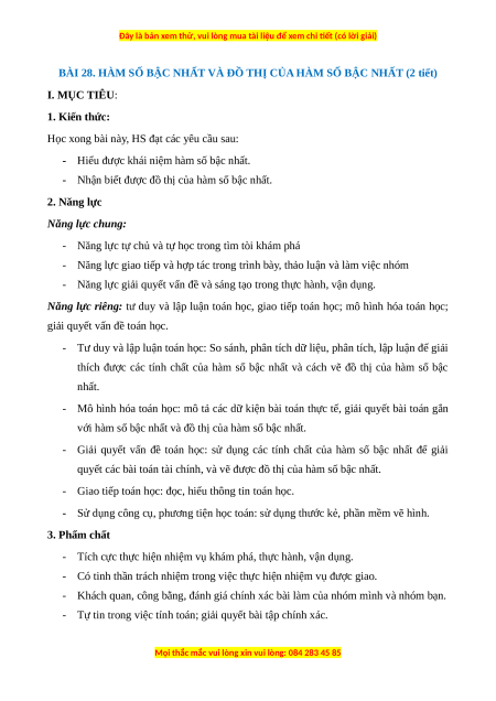 quyết các bài toán tài chính, và vẽ được đồ thị của hàm số bậc nhất.