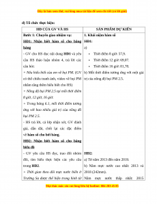 + Nêu hiểu biết của em về bụi PM. (GV b) Mỗi thời điểm tương ứng với một giá