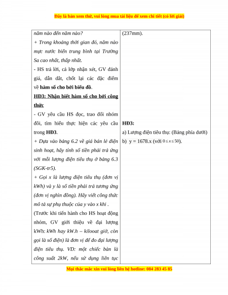 - HS làm quen với khái niệm hàm số thông qua một tình huống trong đời sống.