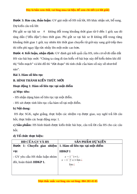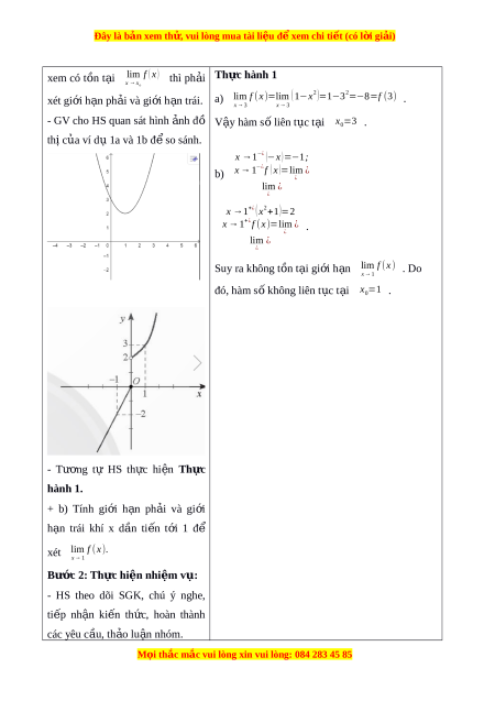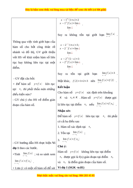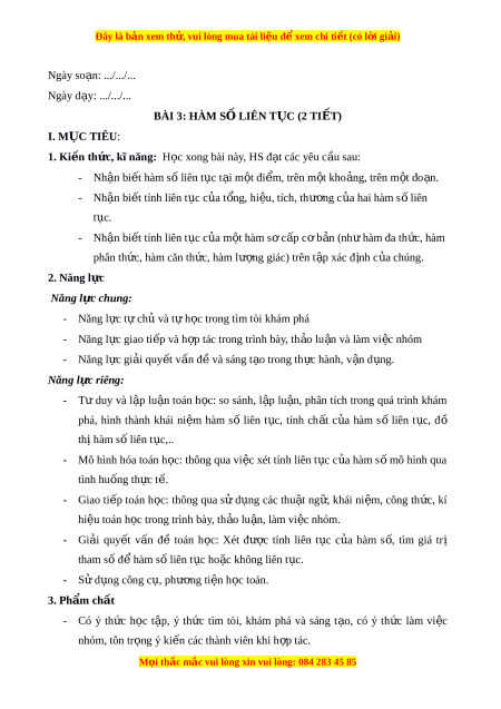Đây là bản xem th , vu ử i lòng mua tài li u ệ đ xe ể m chi ti t ế (có l i ờ gi i ả ) Ngày so n ạ : .../.../... Ngày d y ạ : .../.../... BÀI 3: HÀM S Ố LIÊN T C Ụ (2 TI T) Ế I. MỤC TIÊU: 1. Ki n ế th c