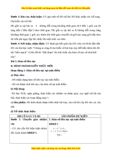 ự tế về phí giữ xe, HS b c ướ đ u ầ nh n ậ bi t ế nh n ữ g ki u ể thay đ i ổ khác nhau c a ủ hàm s . ố b) N i ộ dung: HS đ c ọ tình hu n ố g m ở đ u ầ , suy nghĩ tr ả l i ờ câu h i ỏ . c) S n ả ph m ẩ : HS trả l i ờ đ c ượ câu h i ỏ m ở đ u ầ . d) T ổ ch c ứ th c ự hi n: ệ Bư c ớ 1: Chuy n ể giao nhi m ệ v : ụ - GV yêu c u ầ HS đ c ọ tình hu n ố g m ở đ u ầ :