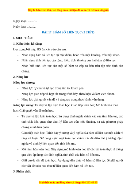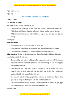BÀI 17: HÀM SỐ LIÊN TỤC (2 TIẾT) I. MỤC TIÊU: