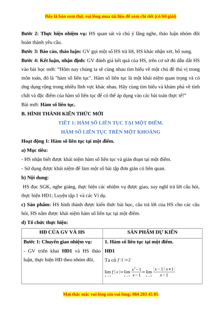 Giáo án Hàm số liên tục Toán 11 Kết nối tri thức