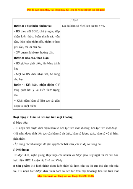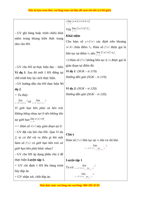 - HS nắm được tính liên tục của hàm số đa thức, hàm số lượng giác, hàm số vô tỉ, hàm