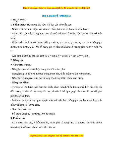 ọ thông qua các bài toán th c ự ti n ễ g n ắ v i ớ hàm s l ố ư ng ợ giác. - Giao ti p t ế oán h c. ọ - S d ử ng công c ụ , ụ phư ng t ơ i n h ệ c t ọ oán. 3. Phẩm ch t ấ - Có ý th c ứ h c ọ t p ậ , ý th c