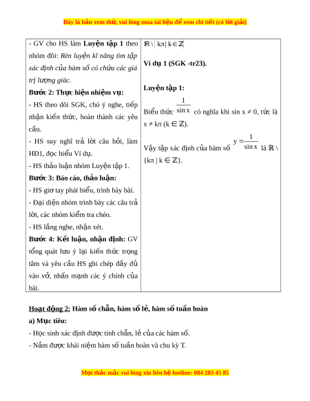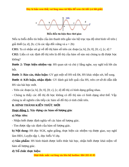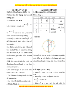 Đây là bản xem th , vu ử i lòng mua tài li u ệ đ xe ể m chi ti t (c ế ó l i ờ gi i ả ) HĐ C A Ủ GV VÀ HS SẢN PHẨM D K Ự I N Ế Bước 1: Chuy n gi ể ao nhi m ệ v : ụ 1. Đ nh ng ị hĩa hàm s l ố ư ng ợ giác Nhi m ệ v : ụ Xây d ng