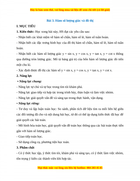Bài 3. Hàm số lượng giác và đồ thị I. MỤC TIÊU