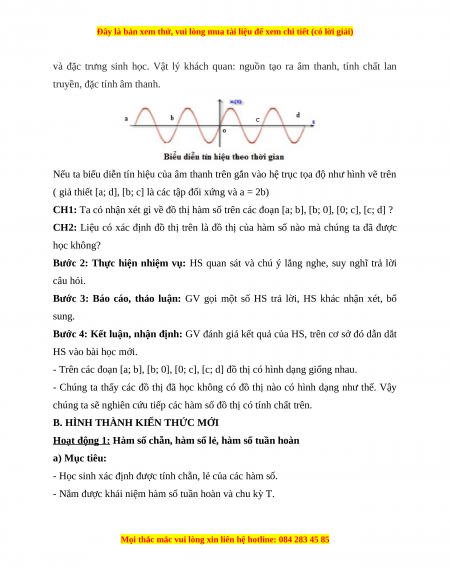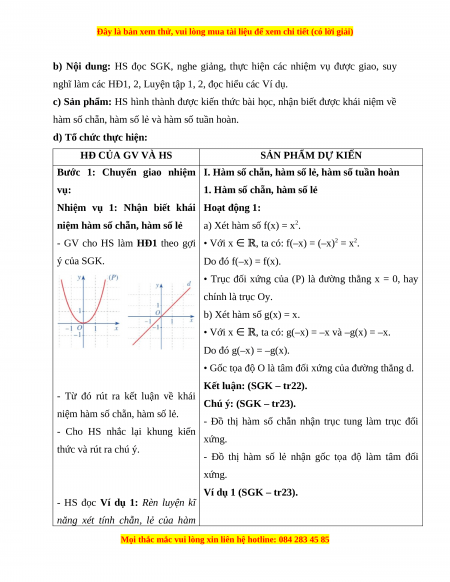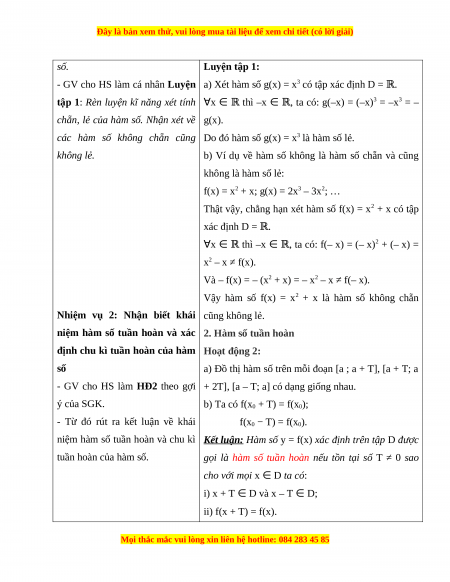 Hoạt động 1: Hàm số chẵn, hàm số lẻ, hàm số tuần hoàn a) Mục tiêu: