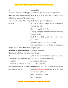 Bước 1: Chuyển giao nhiệm I. Hàm số chẵn, hàm số lẻ, hàm số tuần hoàn vụ: