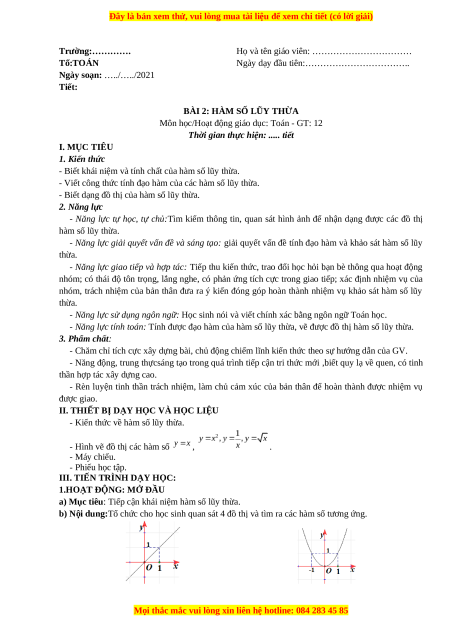 - Biết dạng đồ thị của hàm số lũy thừa. 2. Năng lực
