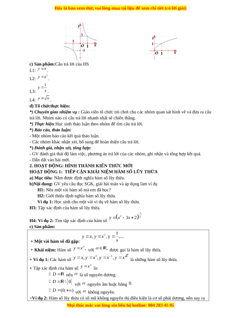 - Chốt kiến thức về khái niệm và tập xác định của hàm số lũy thừa.