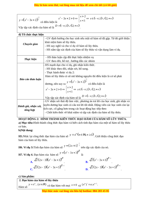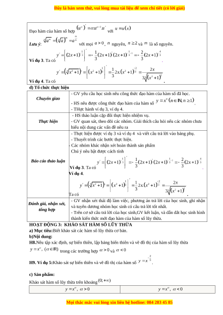 - Năng lực giải quyết vấn đề và sáng tạo: giải quyết vấn đề tính đạo hàm và khảo sát hàm số lũy thừa.