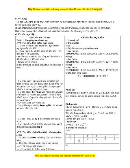 Hoạt động 1: Hàm số mũ a) Mục tiêu: