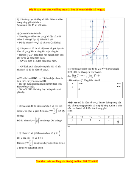 - HS nhận biết và phát biểu được đồ thị và tính chất của hàm số y=ax (a>0,a≠1)
