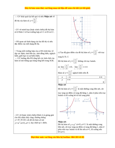 hàm số mũ thông qua bảng tổng kết trong SGK.