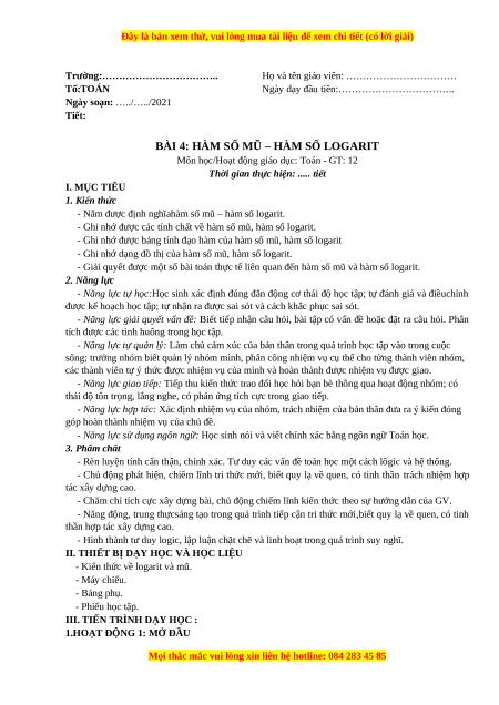 - Giải quyết được một số bài toán thực tế liên quan đến hàm số mũ và hàm số logarit. 2. Năng lực