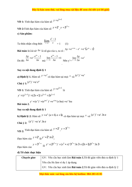 NỘI DUNG 2: Đạo hàm của hàm số mũ