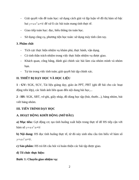 - Giải quyết một số vấn đề thực tiễn gắn với hàm số y=a x2 (a≠ 0) 2. Năng lực
